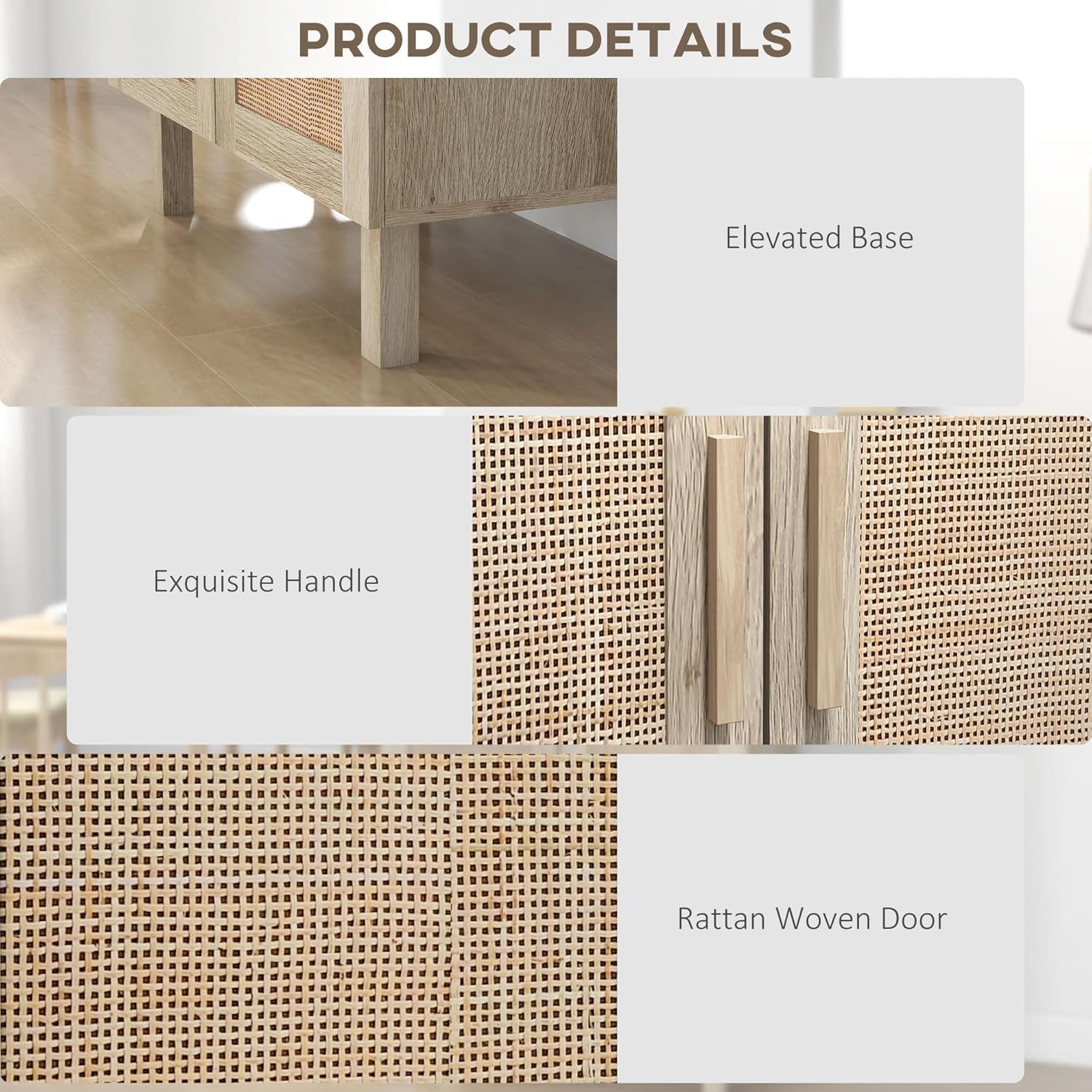 Are you looking for a valuable and elegant cabinet for your home? This storage cabinet with unique woven rattan wicker doors from HOMCOM fits nicely with any decor and can be used in the living and bedroom rooms to create stylish additional storage. The sideboard with 2-tier shelving provides plenty of room for your items. This storage unit is made of MDF with the treated surface will match your interior style, making your home chic and fresh right away.