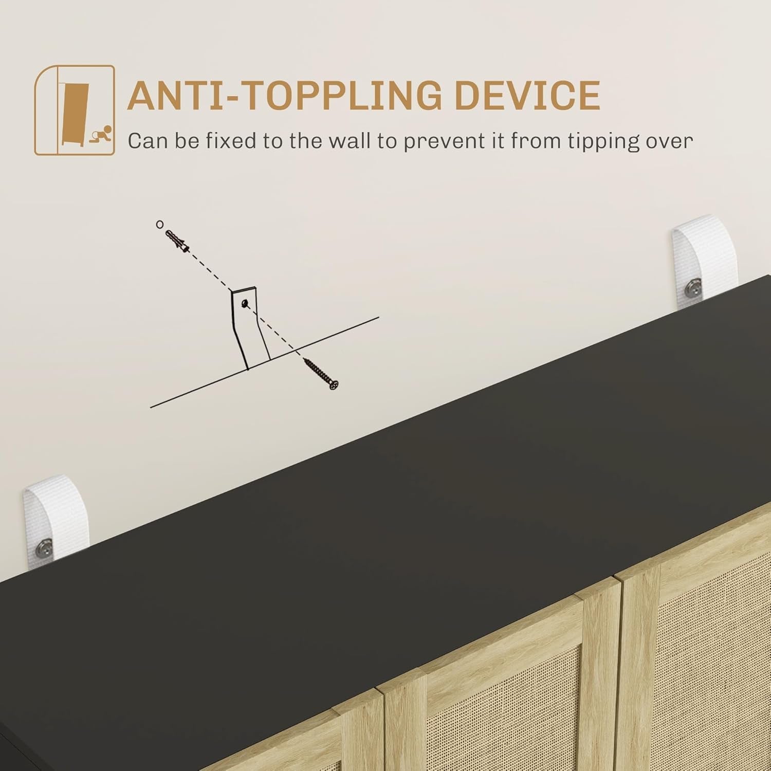 Are you looking for a valuable and elegant cabinet for your home? This storage cabinet with unique woven rattan wicker doors from HOMCOM fits nicely with any decor and can be used in the living and bedroom rooms to create stylish additional storage. The sideboard with 2-tier shelving provides plenty of room for your items. This storage unit is made of MDF with the treated surface will match your interior style, making your home chic and fresh right away.