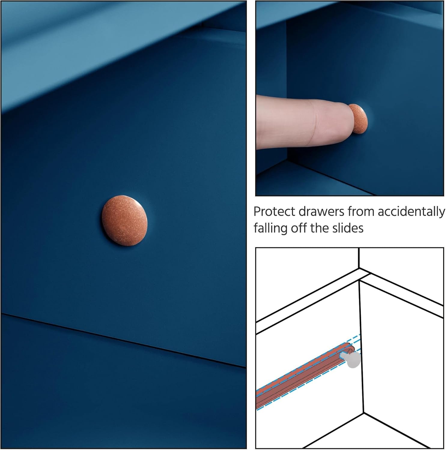 - Safety First: Equipped with plastic stoppers in each drawer, this cabinet prevents accidents by avoiding drawer drop-outs. Includes wall mounting hardware for added stability.